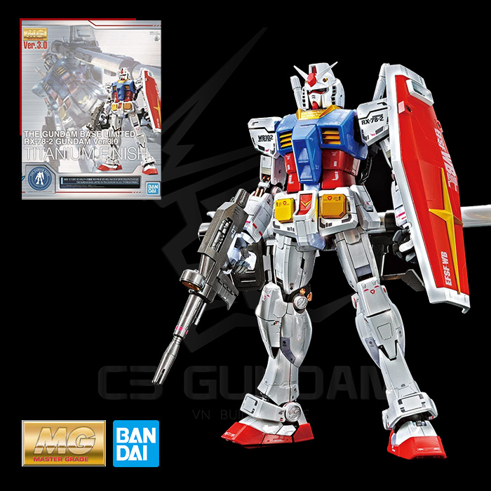 MÔ HÌNH LẮP RÁP GUNDAM BANDAI MG 1/100 THE GUNDAM BASE LIMITED RX-78-2 GUNDAM VER 3.0 (TITANIUM FINISH) GUNPLA CHÍNH HÃNG NHẬT BẢN HGUC